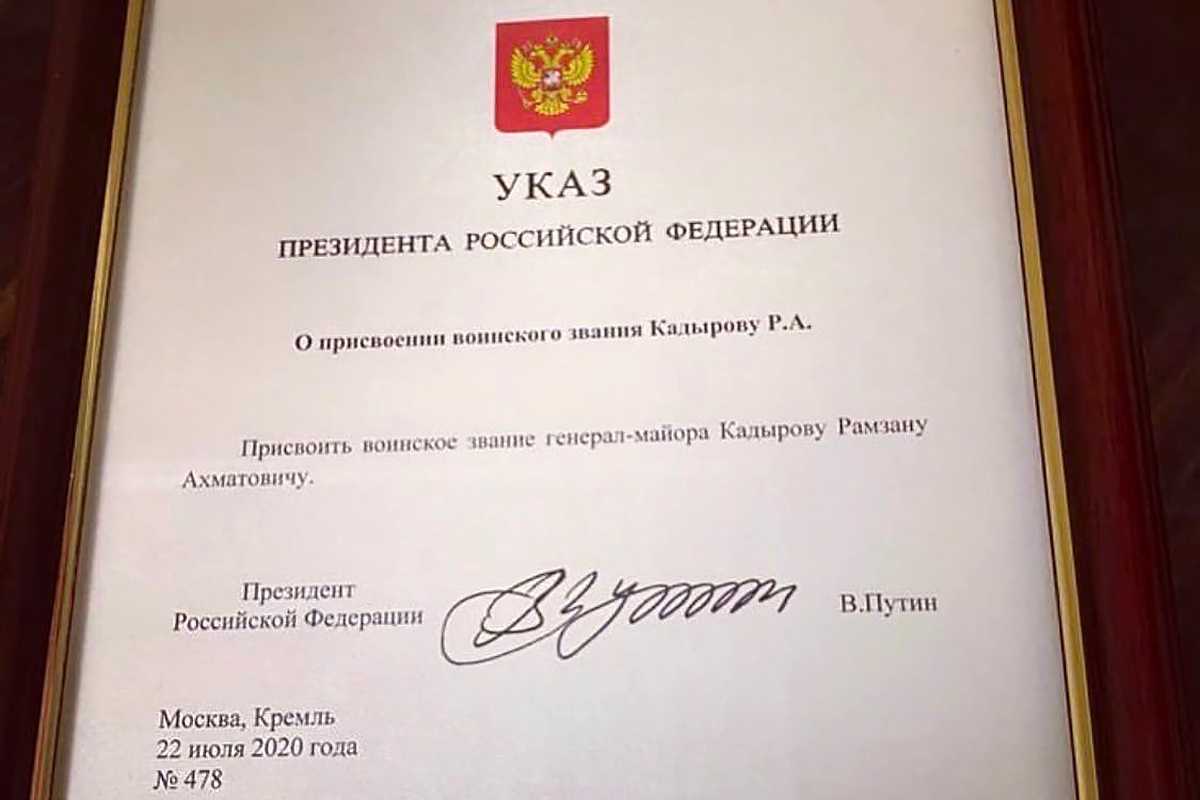 Кадыров сообщил о присвоении ему звания генерал-майора ранее на этой неделе.