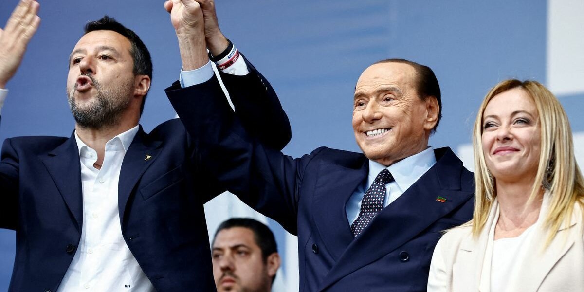 Победу одержала правоцентристская коалиция, которая состоит из ультраправой партии «Братья Италии» во главе с Джорджей Мелони (45 лет), партии «Лига» во главе экс-премьером Маттео Сальвини (49 лет) и «Вперед Италия» Сильвио Берлускони (85 лет).