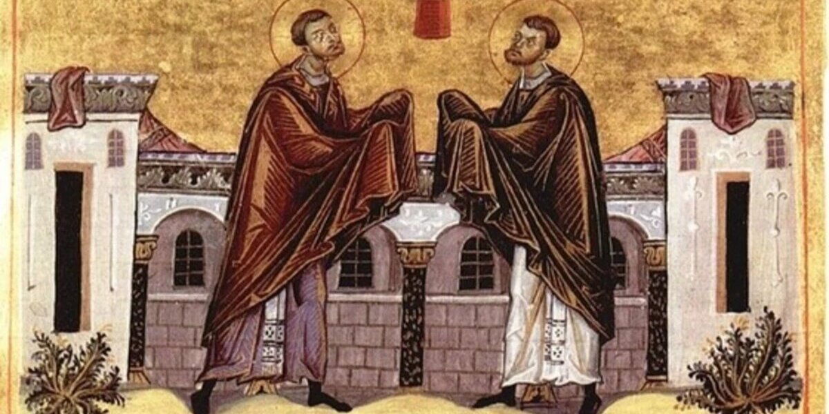 Святые Косьма и Домиан жили в Риме в начале IV века и были врачевателями. Родители воспитали их в строгом почитании христианской веры. За свою работу братья не брали плату, а старались обратить своих пациентов к Богу.
